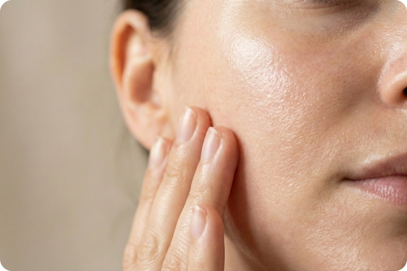 Deine Hautbarriere wird spürbar stabiler. Feuchtigkeit bleibt endlich drin. Fettige Stellen beruhigen sich, trockene Stellen verschwinden, kein Achterbahn-Gefühl mehr.